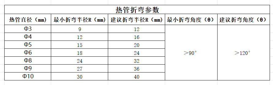 热管折弯参数: